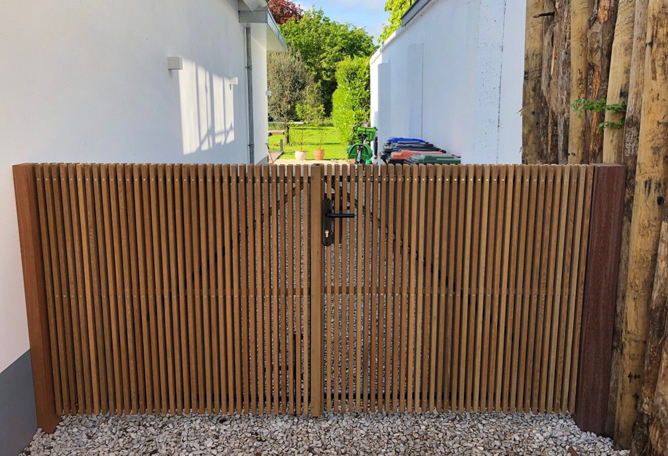 Deze toegangspoort is een uniek ontwerp. Door de toepassing van de smalle latjes, ontstaat er prachtige toegangspoort naar uw woning!