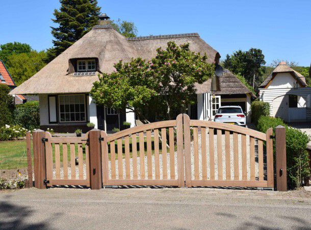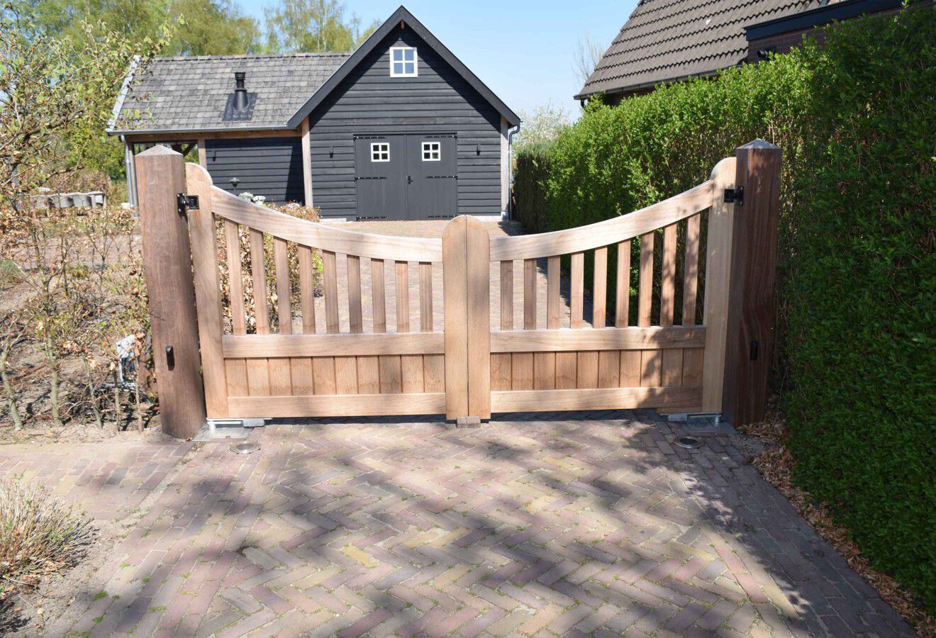 Bij deze prachtige, landelijke schuur is een mooie toegangspoort geplaatst. Hierdoor is de tuin helemaal compleet en biedt deze landelijke toegangspoort, inclusief automatische bediening toegang tot de heerlijke tuin. Maar ook een prachtig aanzien van de tuin. Deze toegangspoort maakt de tuin helemaal af!