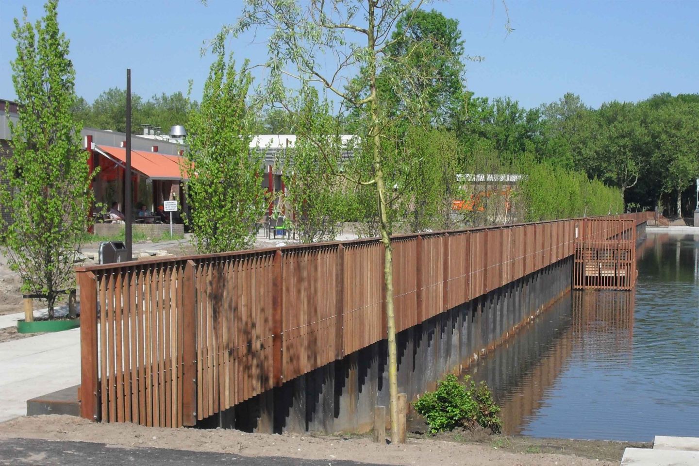 Het hekwerk is een prachtig aanzicht langs een waterkant.